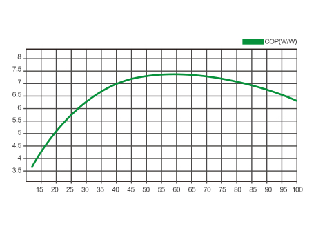 制冷剂分布均匀,温度场优化程度高,大幅提高了机组的蒸发温度,换热效率更高,搭配满液式冷水机组专用螺杆压缩机,制冷量和能效进一步提高,能效达到国家一级标准,最高COP值可达6.2.