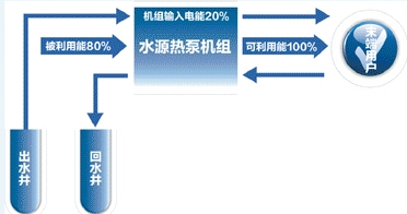 * 机组以地能(地下水道或地埋管)为主要能源,电能为辅助能源(约占总能量20%),通过机组循环,将地能变为可利用的高位能。