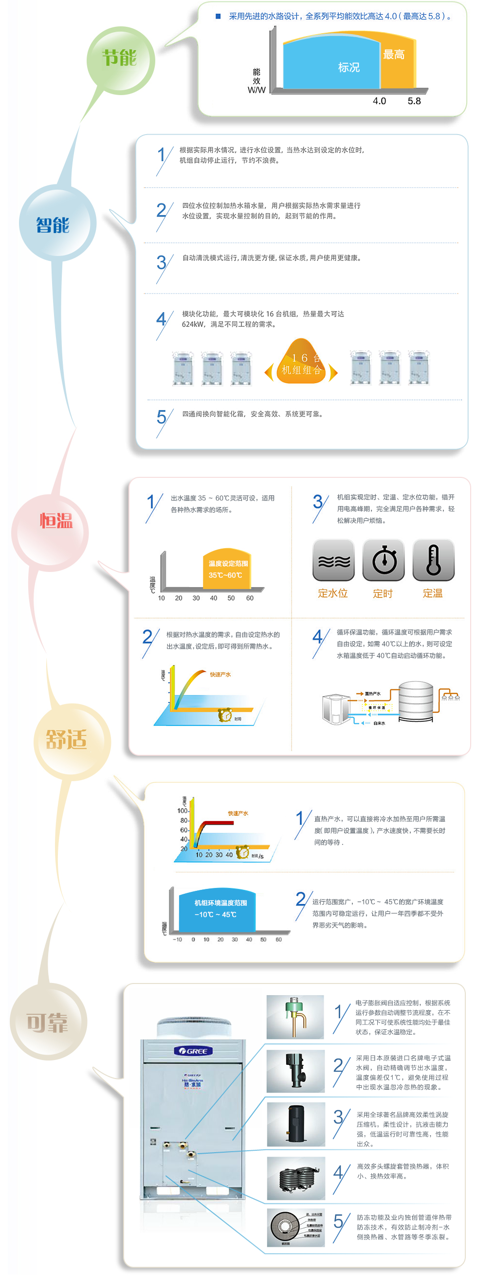 格力“热、水谷”,以空气作为热源,源源不断的将空气中的热量转化到热水中。采用先进的水路自控系统,冷水进入机组后直接被加热到设定温度,进入蓄热水箱后供用户直接被加热到设定温度,进入蓄热水箱后供用户使用,广泛用于宾馆、酒楼、医院、美容美发院、洗衣店、洗浴中心、工厂、足浴、SPA会馆......