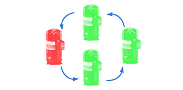 压缩机均衡运行,按每台压缩机的运行时间,确定压缩机启动或关闭的优先权,防止单台压缩机过度使用,有效的延长压缩机使用寿命;启动时压缩机逐台启动,启动电流小,对电网冲击小。